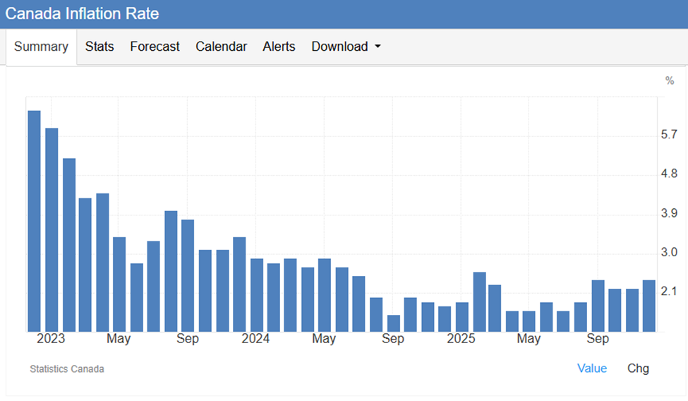 Inflation data on both sides of the border continues to support the view that price pressures are moderating, albeit unevenly. In the United States, the annual inflation rate held steady at 2.7 percent in December, in line with market expectations. Energy prices were a key source of relief, with gasoline prices declining and fuel oil inflation easing, while natural gas prices rose more sharply. Used car and truck prices also showed slower growth. Offsetting these trends, food and shelter costs accelerated modestly, reminding policymakers and investors alike that services inflation remains a persistent challenge. Core inflation, which strips out food and energy, remained at 2.6 percent, the lowest level since 2021, and below expectations for a slight increase. On a monthly basis, headline inflation rose 0.3 percent, driven largely by shelter costs, while the core measure came in softer than forecast.